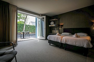 Jullie verblijven in ons stijlvolle groepshotel met 10 ruime suites en een sfeervolle gezamenlijke huiskamer. Denk aan een grote zithoek, twee flatscreen-tv’s en een luxe koffiemachine, perfect voor borrelavonden, spelletjes of gewoon lekker niks doen. Je hebt alle ruimte om samen te zijn, maar ook privacy wanneer je daar behoefte aan hebt.